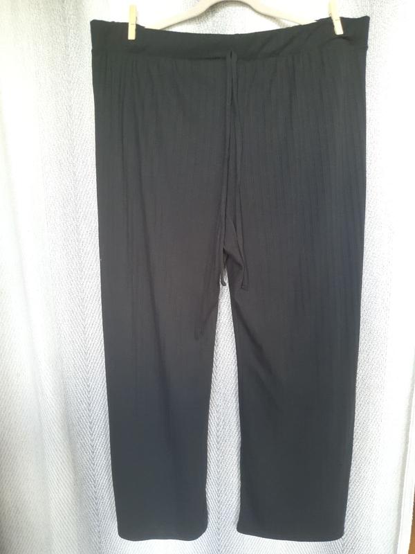 Женские трикотажные брюки палаццо кюлоты в рубчик. Расширенные к низу брюки, брюки, высокая посадка новые без бумажной этикетки состав: 92% - полиэстер, 8% эластан размер 20-22, хорошо тянутся, слегка светятся, возможно подойдут и на больший размер, но ориентируемся на замеры замеры замеры: 4 пояса ПО бедер 68-90 см, посадка от пояса 28/40 см ширина штанины 38-47 см/32,5 см Длина от пояса 100 см Шаговая длина 72 см, без карманов, завязка декоративная - можно убрать тянутся, вторая цифра в измерениях-на связи можно потянуть приятные на ощупь смотрятся весь мой профиль с одеждой больших размеров.