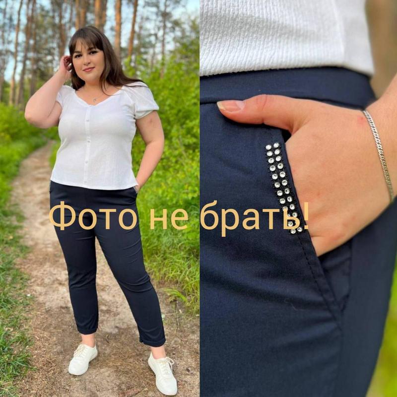 знову в наявності усі розміри Легкі укорочені брючки 7/8 ВЕЛИКИЙ РОЗМІР Бенгалин(легка,натуральна,дихаюча,стрейчева тканина) висока розтяжність Висока посадка По боках кишені Розміри 50-52 дл .94 см вн.шов 68 см, пояс 78-92 см, стегна 104-114 см 52-54 дл.94 см, вн.шов 68 см, пояс 80-96 см, стегна 106-114 54-56 см дл 95 см, вн.шов 69 см, пояс 84-98 см, стегна 110-120 '56-58 см дл.96см, вн шов 68 см, пояс 88-102 см, стегна 112-124 58-60 см дл.98 см, вн.шов 71 см, пояс 90-106 см, стегна 118-130 см 60-62 дл.98 см, вн.шов 72 см, пояс 94-110 см, стегна 124-138;см Виміри у вільному і розтягнутому стані. ТКАНИНА ТЯГНЕТЬСЯ ДУЖЕ ДОБРЕ, РЕКОМЕНДУЄМО ЗАМОВЛЯТИ ЗВИЧАЙНИЙ ВАШ РОЗМІР. НЕ МАЛОМЕРЯТ ! Можуть сидіти як трохи вільно так і по фігурі. ціна 315 грн КОЛІР СИНІЙ І БЛАКИТНИЙ.