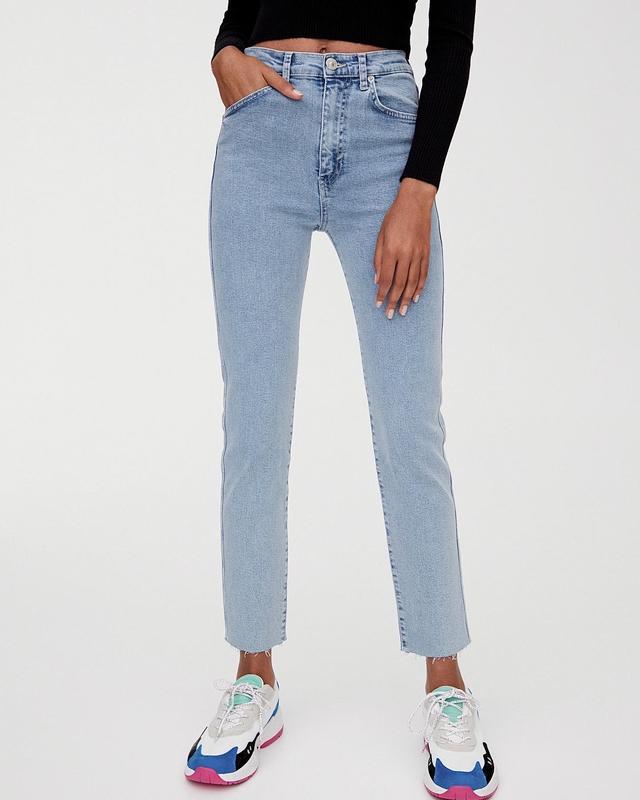 Блакитні джинси Pull&Bear _____________ Щільний еластичний денім Висока посадка Шикарно підкреслюють форми Гарна якість В наявності розмір S Талія 32 Посадка 28 Півобхват стегон 48+ Довжина 96