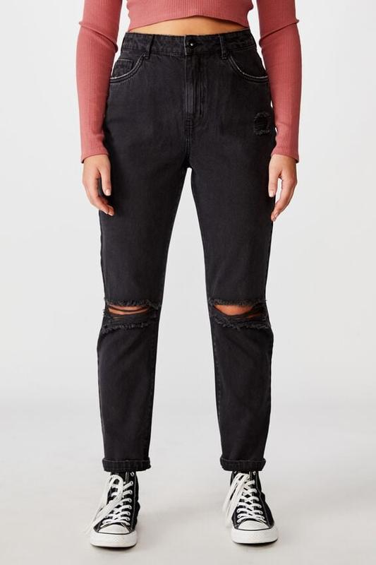 Сірі чорні жіночі джинси щільні широкі прямі мом бойфренди кроп висока талія розрізами дір...