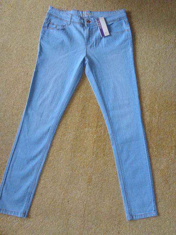 Голубые джинсы skinny George ( Британия ) - отличная кежуал модель ! Состав джинсовой ткани : 70 % cotton ,17 % polyester ,12 % viskose , 4 % elastane . Замеры : ПО пояса - 39 см ( тянется ) ,ПОБ - 46 см ( тянется ), посадка спереди - 23 см , посадка сзади - 36 см, длина шагового шва - 76 см.