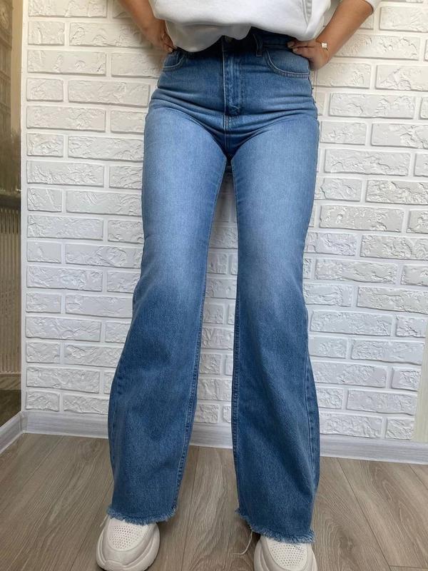 Джинси палаццо Модель Т-01 Виробництво Туреччина Тканина: джинс бавовна, не тягнуться Розміри: 34,36,40,42 Колір: блакитний Ціна: 950 грн Заміри, см Заміри у вільному стані 34й, пот 31, поб 47, довжина 109/81 36й, пот 32, поб 48, довжина 110/82 40й, пот 36, поб 51, довжина 112/84 42й,пот 38, поб 53, довжина 114/86
