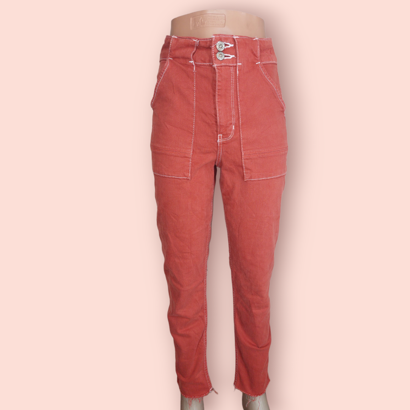 Пояс 31,5-34 см, поб 43см трохи тягнуться, довжина по зовн шву 97 см, по внутр шву 68,5 см, ширина штанини внизу 14,5см, посадка спереду 30 см