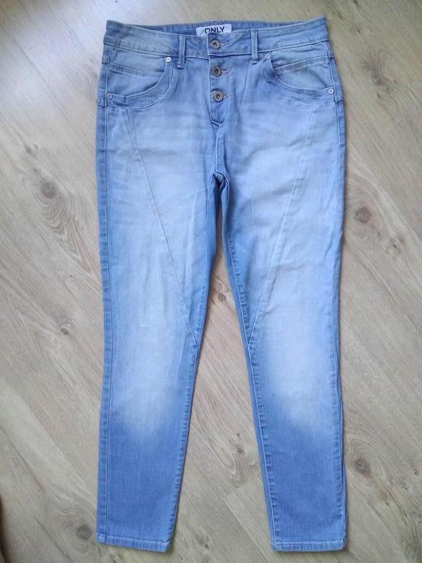 Стильні блакитні джинси only на гудзиках/жіночі джинси штани з потертостями Бренд only (because we love denim) Розмір 28/"32. Довжина по боку 94 см. По талії 40-42 см, стегна 48 см. Нога в найвищому місті 27 см, низ 15 см. Посадка по переду 25 см, ззаду 36 см Склад 98% бавовна 2% еластан Стан нових
