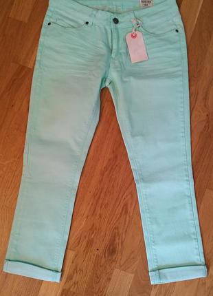 Мятные мягенькие стрейчивые укороченные джинсы отличного качкства в р 29 ПОТ 37 ПОБ 46 ДИ 89/67 высота посадки 19.5/30.Есть на размер меньше