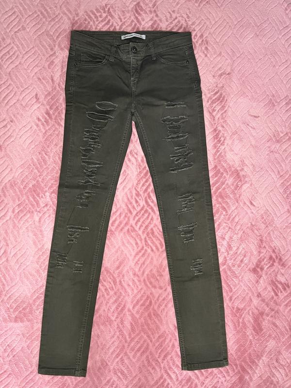 Джинси Stradivarius Ідеальний стан, стрейчеві , тягнуться. Size: M Заміри: півобхват в поясі - 38,5 см, довжина від пояса до низу - 99,5 см, посадка по передній частині - 20 см, посадка по задній частині - 32,5 см, довжина штанини по внутрішньому шву - 77,5 см.