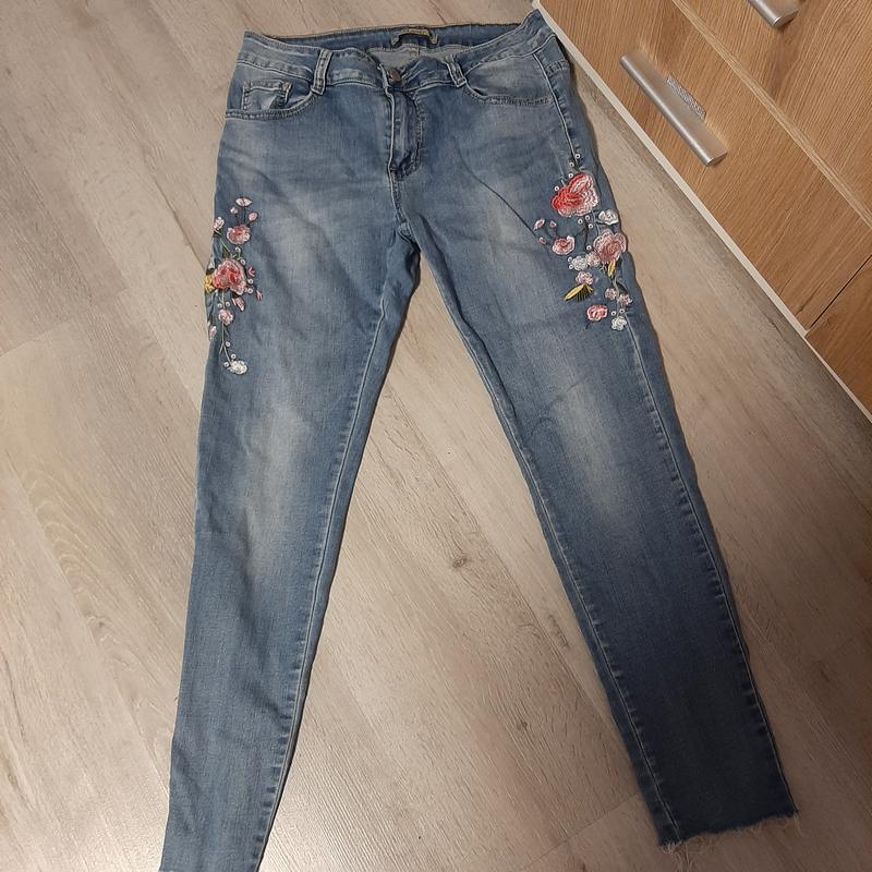 Джинси з вишивкою в гарному стані, добре тягнуться. ПОТ 40 см довжина 90 см