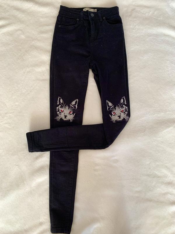 Джинси скінні з вишивкою, які ідеально лягають по фігурі, висока посадка. Параметри: ОТ- 60, ОБ- 76.