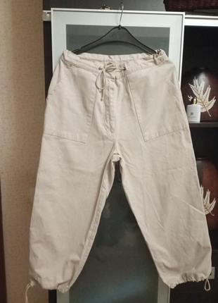 Відмінний коттон. Пояс 80 см. регулюється шнурком Бедра 100 длина 80, по низу брючини є стяжка