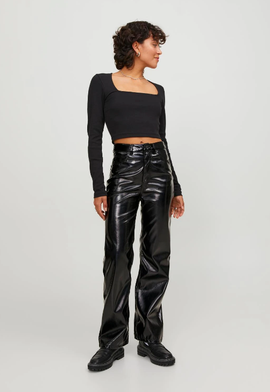 Трендові прямі джинси з екошкіри з "лаковим" ефектом від jjxx – колекція 2024 рік