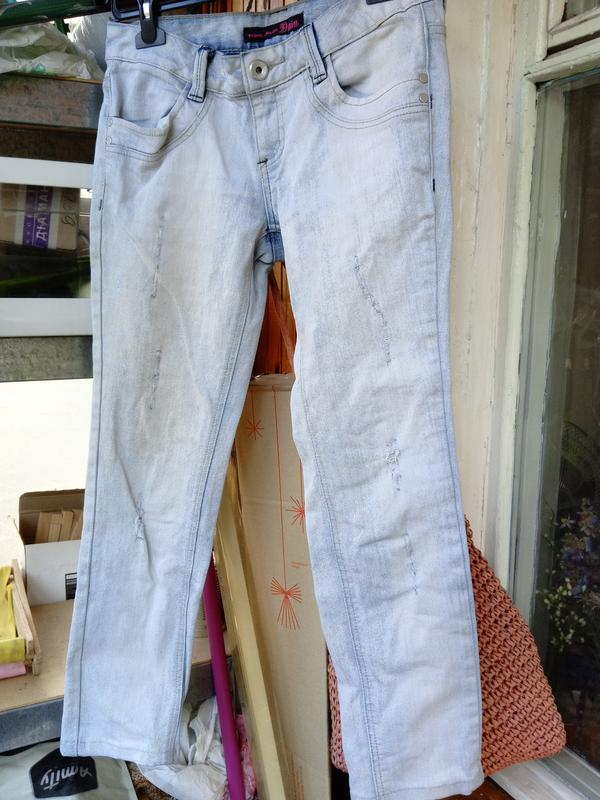 Джинсы світлі вузькі, щільний коттон, з декоративними подряпинами