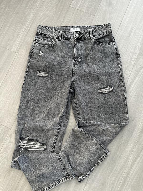 Жіночі джинси сірого кольору з прорізами Матеріал цупкий але не є грубим Розмір вказано 16 ( європейський 44) Сідають добре на бедра 110-115см Купували для фотосесії вагітності та буди вдіті лише раз Стан нові