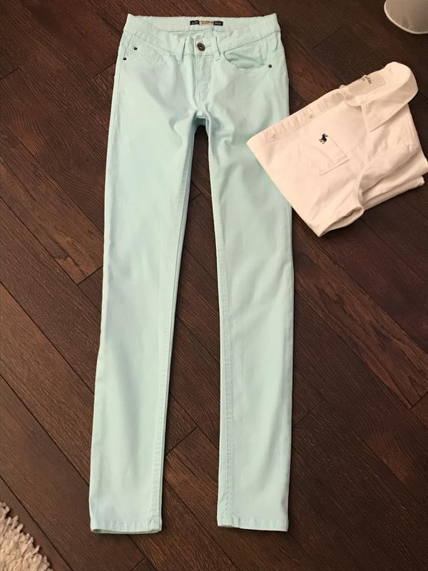 Шикарні насичено бірюзові джинси скіні pull & bear, розмір 34, хс/с