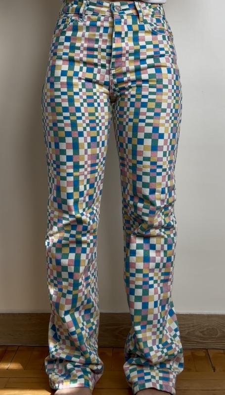 джинси демісезонні з принтом на високій посадці довжина: 110 см довжина штанини: 80 см обʼєм талії: 72 см обʼєм стегон: 92 см