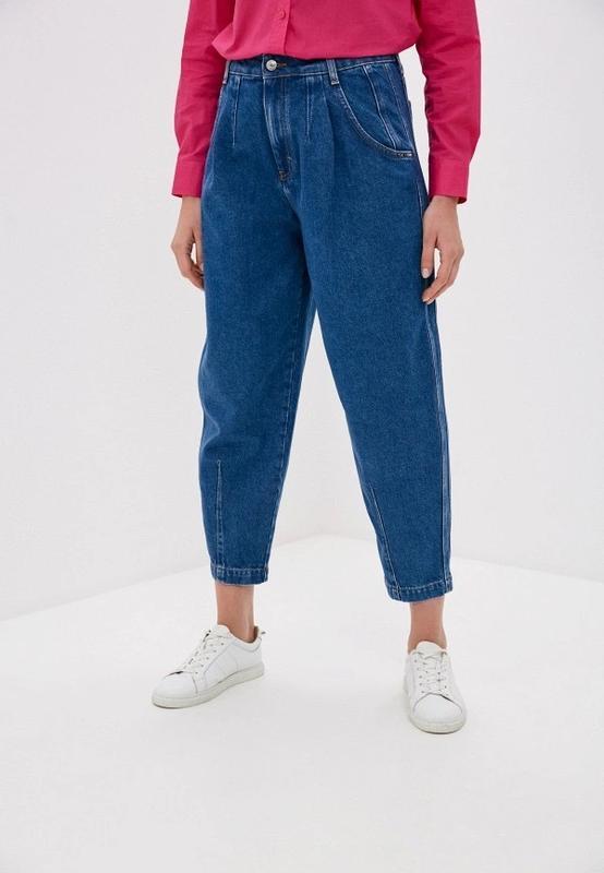 Сині джинси балони на високій посадці. Щільний якісний джинс. Не тягнуться. Заміри: посадка 33 см, пояс 35 см, стегна 51 см, довжина 95 см