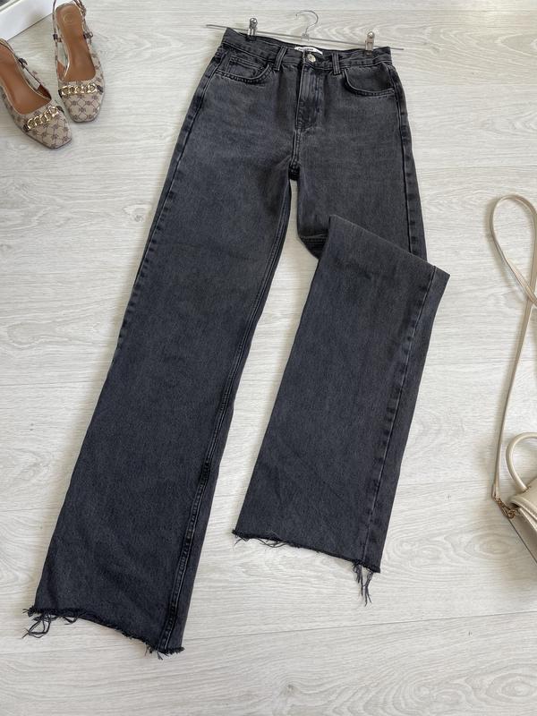 Стильні широкі джинси на високій посадці, чорно-графітового кольору д 109/81, поп 33-34, поб 45-46, посадка спереду 30, ширина зверху 26, знизу 22,5