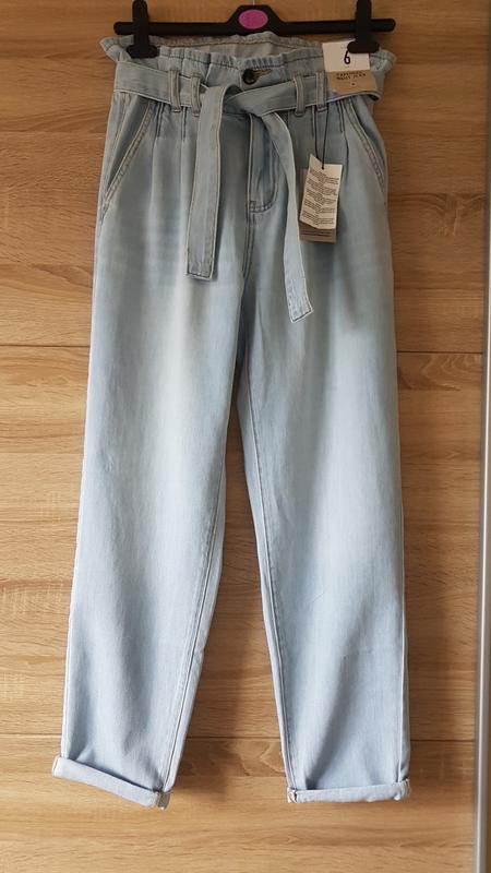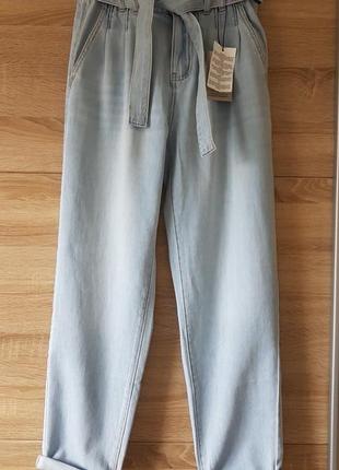 Из мягкой вареной джинсовой ткани. высокий эластичный пояс ,защипы по талии. карманы спереди. В наличии размер 6XS размер 6XS пот 34-38 поб 46 длина 100 шаговый 70 размер 10M пот 38-42 поб 53 длина 102 шаговый 71