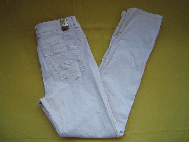 Фірмові нові джинси бежевого кольору, Стік. ПІТ 39див, ПОБІДИ 48см. Висота посадки спереду 25см. Довжина штанів по боковому шву 103,5 див. штанини внизу 16,5 див.