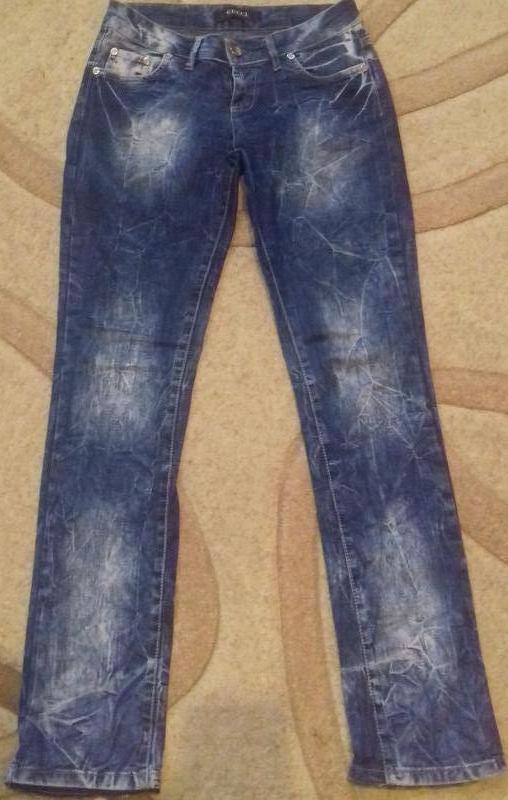 Продам відмінні жіночі стрейчеві джинси синього кольору 29 розміру. Внизу ззаду прикрашені блискавками.