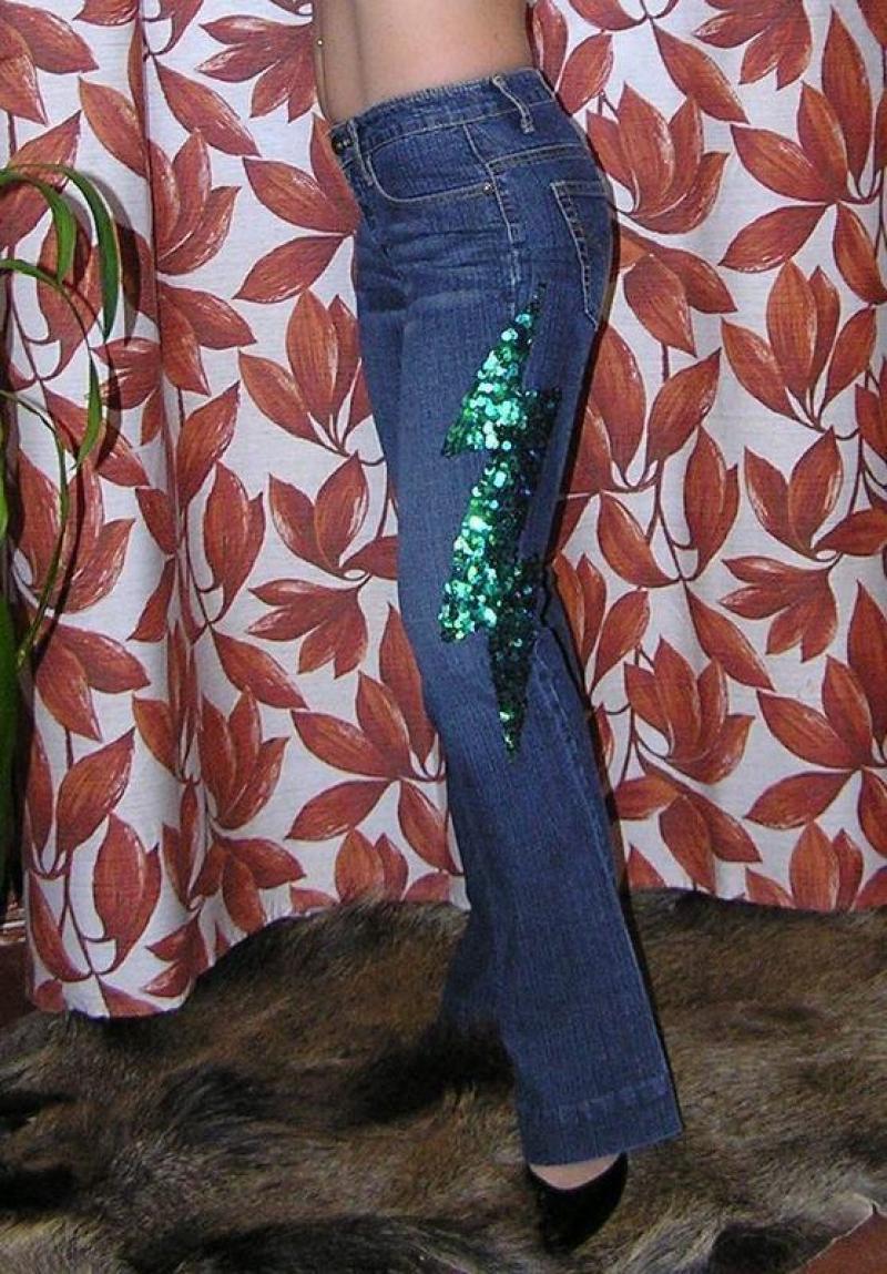 Ексклюзивні джинси з візерунком з паєток, XFN, 27-28 розмір. б/у. Фонтан. Довжина - 99 см, напівобхват талії - 35,5 див. Є маленький мінус - маленька крапочка, помітила, тільки коли робила фото.