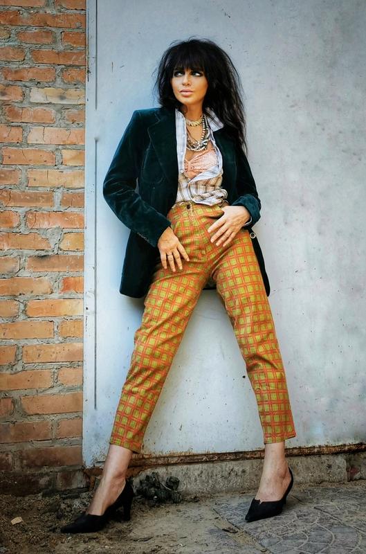 Джинси штани в клітку вінтажні висока посадка стрейч коттон бавовна