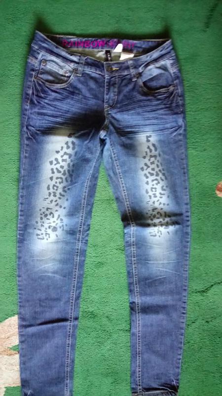 Сині джинси з притому спереду. Дуже ефектні. Одягалися один раз, розмір 38 європейський