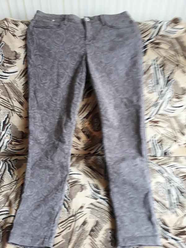 Штани, розмір 50-52, в ідеальному стані, бирки немає, коттон, тягнуться, дуже приємні до тіла. Довжина 100см, крокової шов 77см, посадка 23см попереду, ззаду 37 см, пояс 44-45см, стегна 50-51см, брючина вгорі 27 см, тканина добре тягнеться.