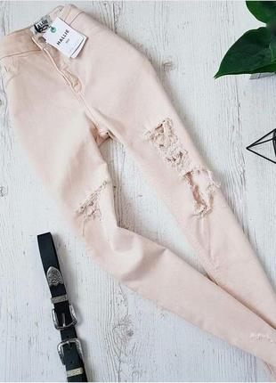Прекрасні джинси з високою посадкою, ніжно рожевого кольору, з розрізами спереду, джинс плотний, європейський 38 розмір