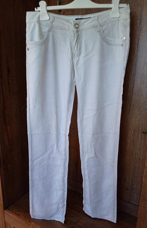 Світлі сіро-білі джинси. Літні, легкі, невагомі. ПІТ - 42 см ПОБІДИ - 49 см Довжина - 99 см
