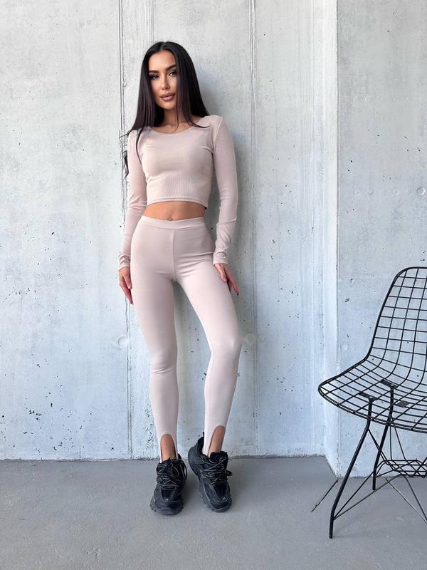 Новинка 🔥 Лосинки зі штріпками Мод М475 Тканина рубчик Розмір с(42-44), м(44-46), л(46-48),хл(48-50) Кольори: чорний та беж