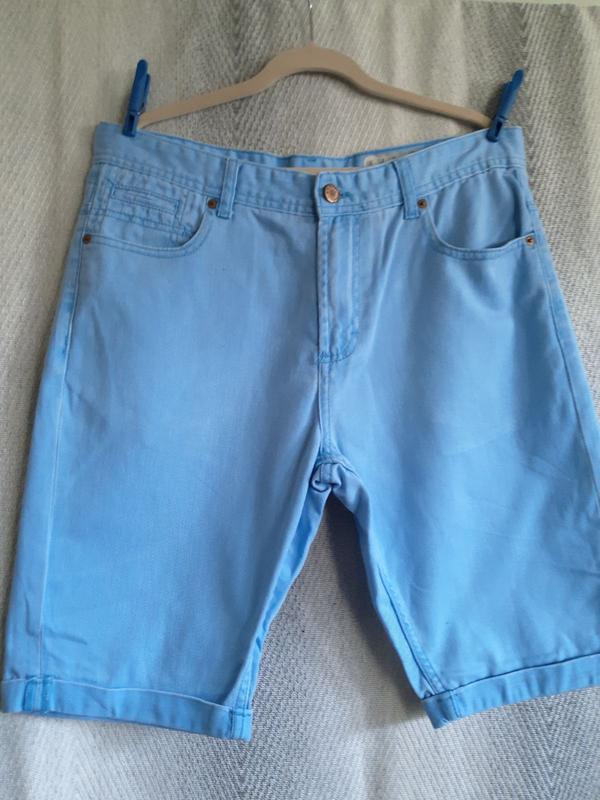 100% коттон Жіночі чи чоловічі (унісекс) брендові джинсові шорти бермуди. великий розмір. батал гавайка Яскраво блакитні, як на фото. в одному розмірі 34, орієнтуйтеся на вимірювання. виміри: ПОП-43 см ПІБ-61 см ПО ноги вгорі - 31,5 см ПО ноги біля коліна -21,5 см Довжина-52,5 см Передня посадка – 27 см Задня посадка – 35,5 см. М'які, зручні. Відмінна якість у хорошому стані.