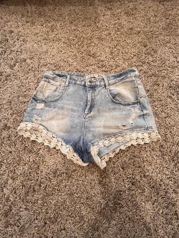 Продам шорти за найкращою ціною…Деннім,гарна посадка,ідеальний стан В поясі 42 см Бедра 53 Довжина штанги разом з декором,перід 30см Зад 37