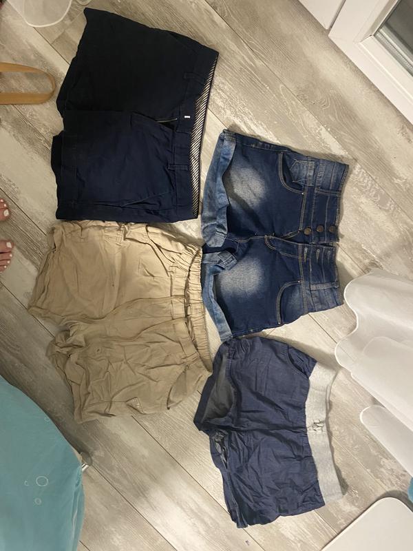 Шорти джинсовые : пояс 32, бедра 50, посадка 28, длина 28. Шорти тканевые с серым поясом : пояс 36, бедра 50, длина 30, посадка 28. Шорты синие : пояс 37, бедра 52, посадка 27, длина 30. Шорты бежевые : пояс 34, бедра 54, посадка 28, длина 38. Цена поштучно