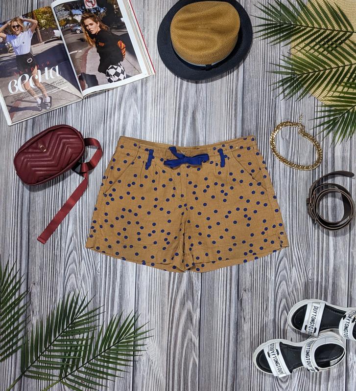 Доброго дня, для точного визначення підійде річ або ні, порівнюйте будь-ласка з вимірами своєї подібної речі, а не зі своїми об'ємами. Неймовірні тонкі корисневі натуральні шорти. Посадка висока, штанини широкі. Є передні та задня кишені, також є петлі для поясу. Застібаються спереду на блискавку та зав'язуються на шнурок. Тканина тонка, натуральна. Дуже приємні до тіла. Не тягнуться, не просвічуються. Колір: Коричневий, Синій Принт: Горох Стан: Ідеальний Дефекти: Без дефектів Розмір по бірці : 8/36, можна на 10/38 Виміри зроблені в півобхваті. Довжина виробу по боковому шву 32см Довжина внутрішнього шва 10см Півобхват по поясу 40см Півобхват стегон 51см Посадка спереду 23см Посадка ззаду 29см Ширина штанини зверху 32см Ширина штанини знизу 32см Склад тканини : 55%Льон, 45% Віскоза Оплатити можна через Безпечну покупку або оплатити на карту Приватбанку. Доставка можлива Укрпоштою або Новою поштою. Бронювання на оплату тільки одна доба. Не забудьте ПІДПИСАТИСЬ щоб не пропустити новинки та розпродажі. Вдалих покупок 🌹