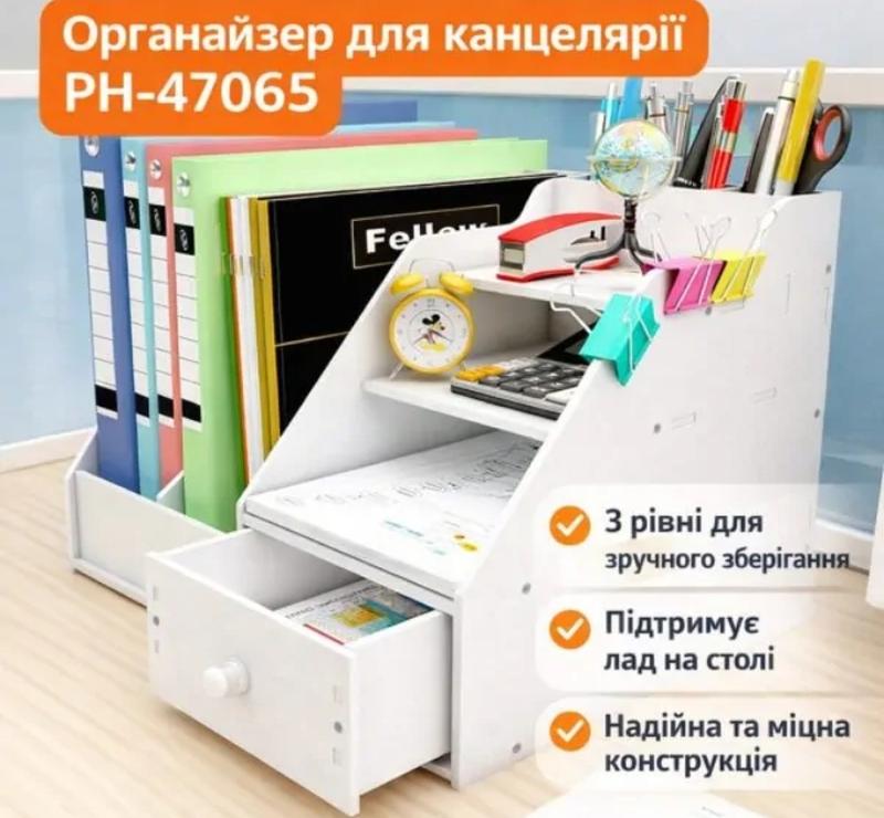 Дерев’яний настільний органайзер ProHouse PH-47065 — це стильне та практичне рішення для впорядкування робочого простору. Завдяки компактним розмірам та продуманій конструкції він допомагає тримати документи, зошити, книги та канцелярські дрібниці у зручному порядку. Органайзер виготовлений із якісного дерева, що забезпечує міцність та довговічність, а світлий відтінок гармонійно поєднується з будь-яким інтер’єром офісу чи дому. Розширений дизайн із кількома відділеннями дозволяє швидко знаходити потрібні речі та підтримувати порядок на столі. Характеристики Тип: настільний органайзер Модель: ProHouse PH-47065 Матеріал: дерево Колір: світлий дерев’яний Призначення: для документів формату А4, книг, зошитів та канцелярії Переваги Місткість та багаторівнева конструкція Допомагає підтримувати порядок на робочому столі Міцні матеріали та довговічність Універсальний дизайн для дому та офісу Легке складання та стійкість Комплектація Деталі органайзера для складання Кріпильні елементи Інструкція