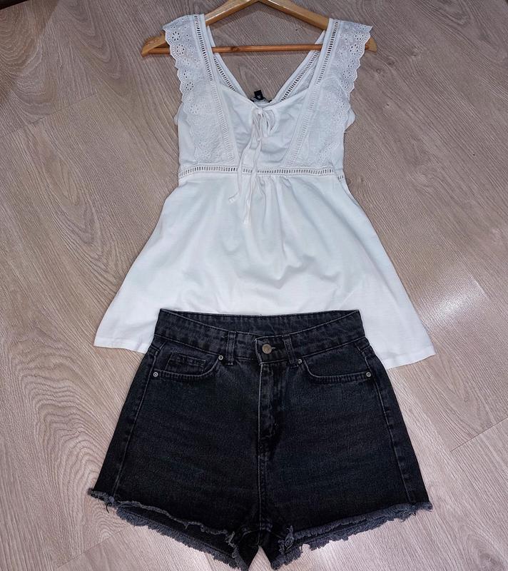 Набір із топа та джинсових шортів. Розмір С. В стані нових. Топ: довжина 67 см, пог 39 см, тягнеться до 45 см., пот 36 см. Шорти: ПОП 32 см. ПОС 45 см. Довжина 30 см. Ціна набору 599 грн. #viktoriya_bendova_tkachuk