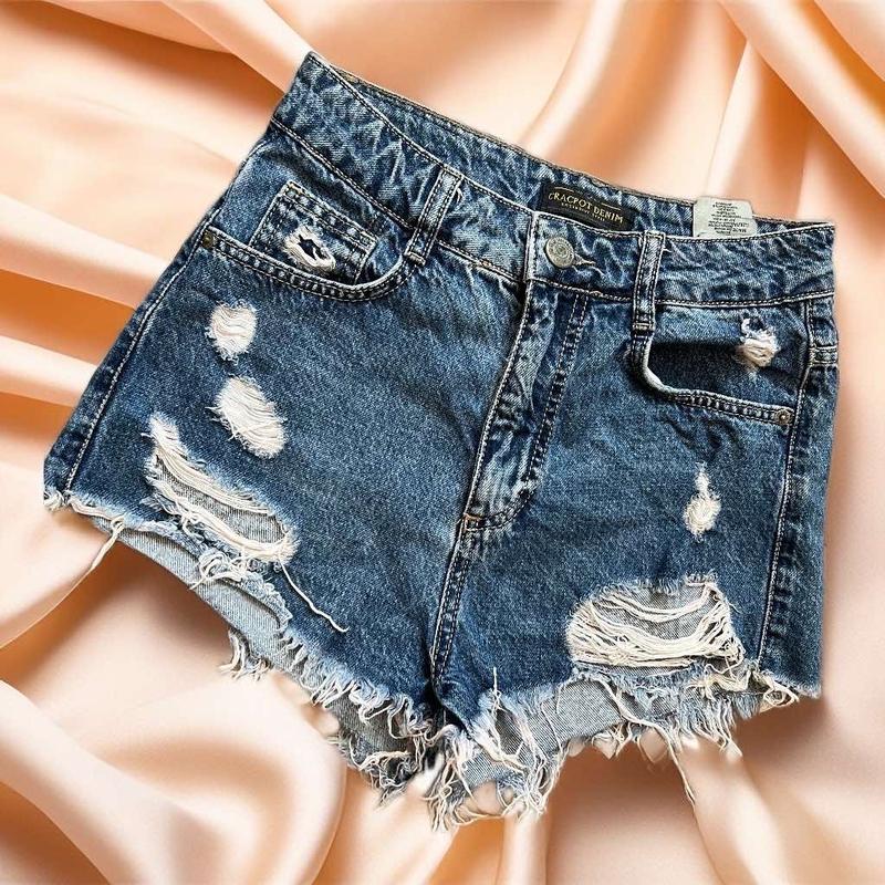 Стильные , модные коротенькие джинсовые шорты . Очень круто сидят на фигурке . Размер 26 подойдет как на xs так и на s )