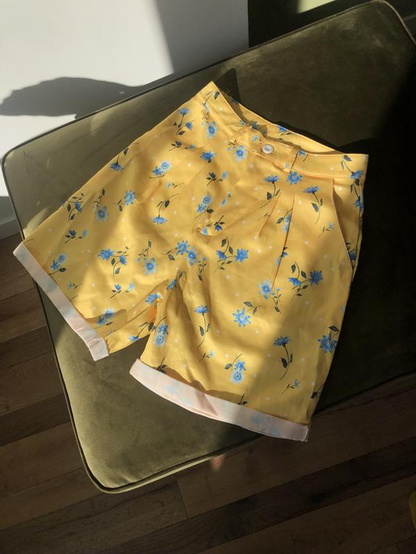 Жовті бермуди з квітковим принтом, дуже гарно підкреслюють фігуру. Розмір М Довжина - 45 см В поясі - 69 см Стегна - 90 см