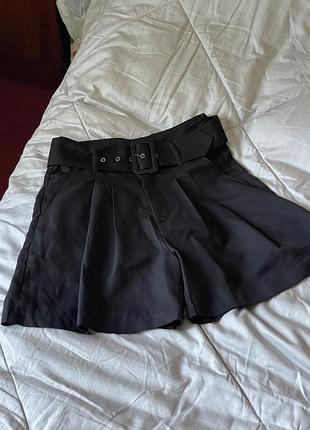 Трендовые шорты бермуды из костюмной ткани с защелками и ремешком, имеют карманы