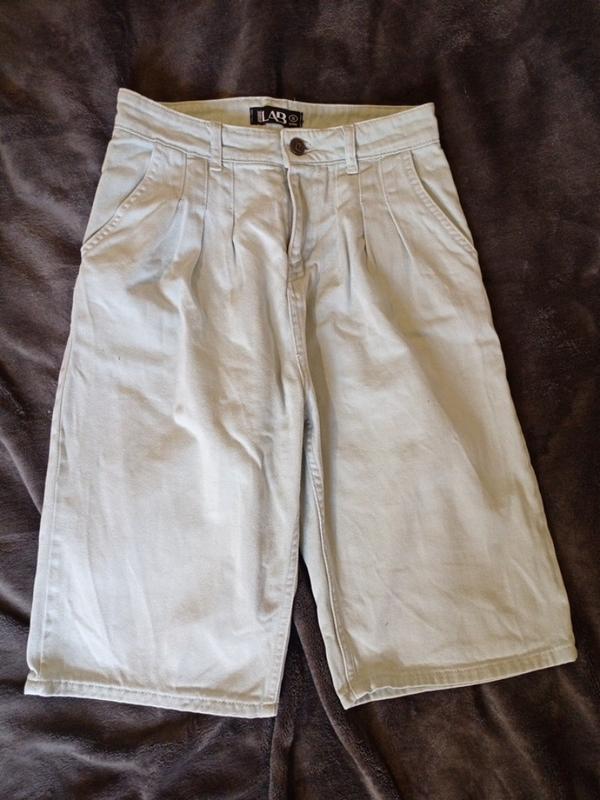 Джинсові шорти бермуди lab з щільного деніма з високою посадкою стильні оригінальні тренд...