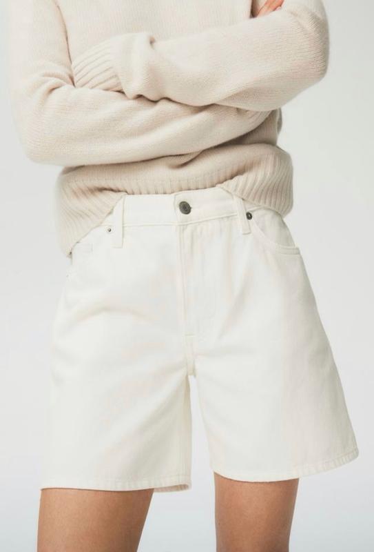 Шорты с высокой посадкой, красивого приглушенного желтого цвета, размер S-M. 100% cotton. ПОТ 36 см, общая длина шорт по боковой стороне 48 см, ПОБ 53 см, шаговый шаг 19 см, высота посадки 30 см.