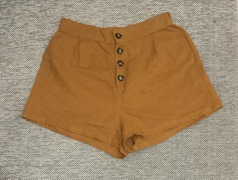 Легка натуральна тканина: 55% рами 45% бавовна Тканина рами – це продукт, який виготовляється з волокон особливого різновиду китайської кропиви (ботанічно відомої як Boehmeria nivea). На розмір: XS-S (26) Заміри: 32-35 см пот, 32 см довжина, 32 см ширина однієї штанини, 51 см поб Коріл: охра