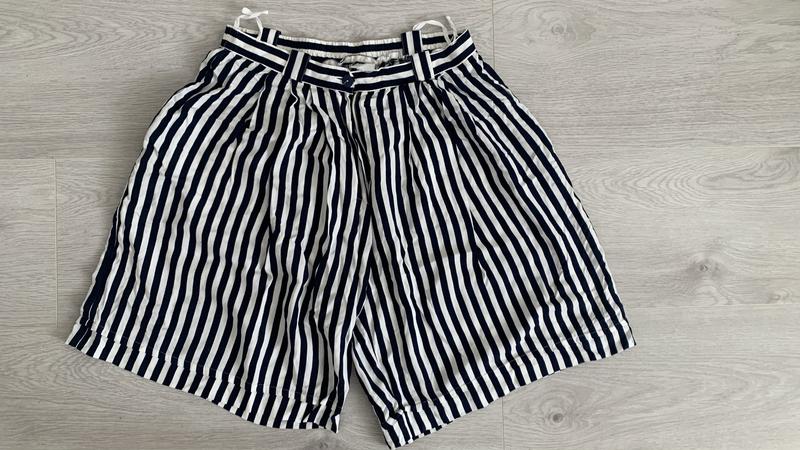 Жіночі шорти, синьо білі, тканина проста, легенькі, по талії ззаду на резинці, в не розтягнутому виді 78см, 92см-розтягнуті, довжина 54см