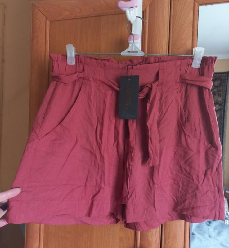Розпродаж натуральні шорти з поясом кірпічного кольору