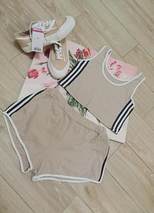 супер набор на лето,не жарко, очень удобно,размер с-л,длина шорт34,талия по35+тянется на резинке,бедра по44,топ длинна 34,объем груди 35,материал Коттон