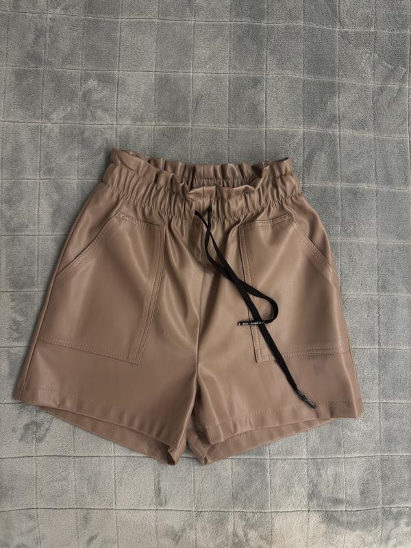 Шорти з шкіряного замінника кольору капучино, українського виробництва