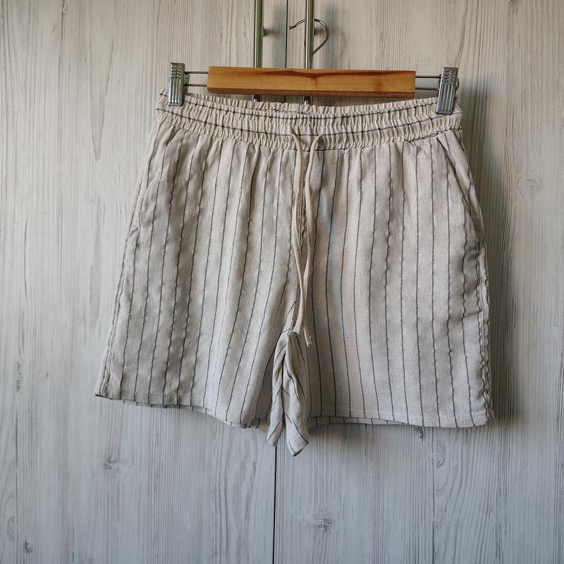 Шорти у відмінному стані, пошкоджень не мають, колір відповідає фото, склад тканини також на фото. ПО пояс від 34 до 40, також в поясі є куліска ПОБ 48 Посадка спереду 27 Довжина по боковому шву 36 Довжина внутрішнього шву 10