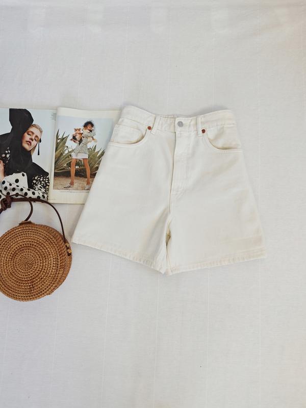 🌿джинсові шорти від Zara високої посадки з цупкого деніму Розмір:40 Заміри:ПОГ 40 см, ПОБ 59 см, довжина 43 см