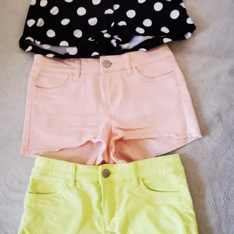Три пары летних шорт салатового, розового цвета и черного в горошек. Удобные и стильные, подойдут для активного отдыха. Размер XS, S 1 шт при 100 грн 2 шт при 150 грн 3 шт при 200 грн
