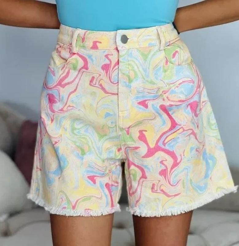 Високі джинсові шорти кльош мармурового забарвлення XS-S Заміри ВНИМАВНО дивіться внизу! Стан чудовий, дефектів немає, нюансів і слідів носіння — НІТ, стік Бирка S, але можна на XS Тканина щільна, натуральний джинс 100%, взагалі не тягнеться Чудова висока посадка. Одето на L, зріст 165 (ОГ 99, ОТ 77, ОС 99) — малий дуже (колаж) ЗАМІРИ: довжина 33 НОС 51 ПОТ 34 (максимум 35) посадка 31 спереду, 38 ззаду вихід 32 Відсилання Нової або укріпки.